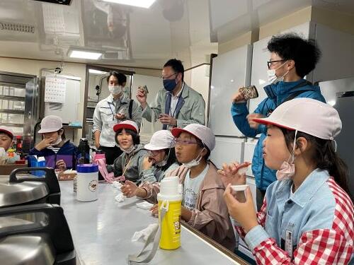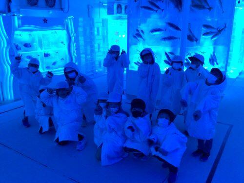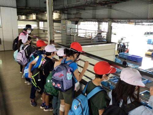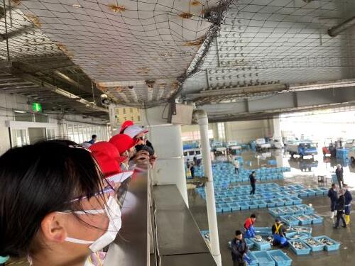 2年生は,魚市場見学や氷の水族館,大島に行きました。亀山展望台から見る気仙沼の景色を見て,鹿折を向こう側から見る風景に驚いていました。