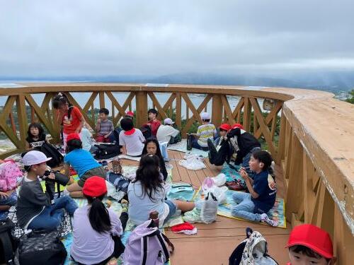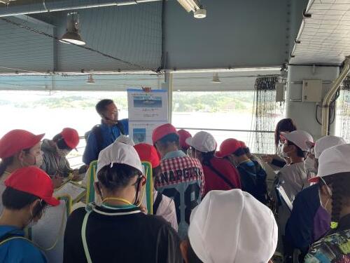 本日,5年生は洋上巡りとウォークラリー,キャンプファイアーを行いました。朝には小雨が降っていましたが,洋上巡りの時間になると天気もよくなり,志津川湾を一望できました。