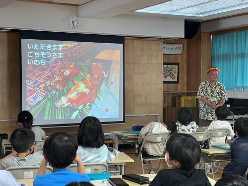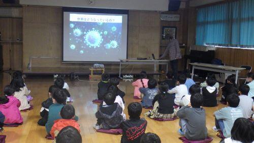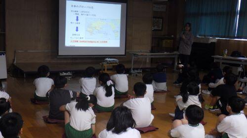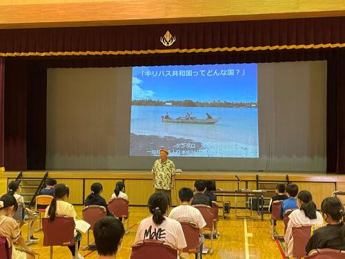 3~5校時,3年生以上の児童がキリバス共和国について学びました。4年生以上の児童は,これまでキリバス共和国の小学生と交流を行ってきました。今日は,日本キリバス協会のケンタロ・オノさんから,キリバス共和国についてたくさんのお話を聴かせていただきました。