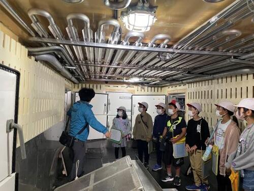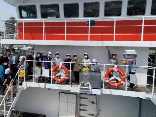 また、船の上から間近に海を見下ろしたり、巡視船の中の機械に触らせてもらったりしました。初めての船に乗る子もおり、とてもよい経験になりました。海上保安署の皆様、ありがとうございました。