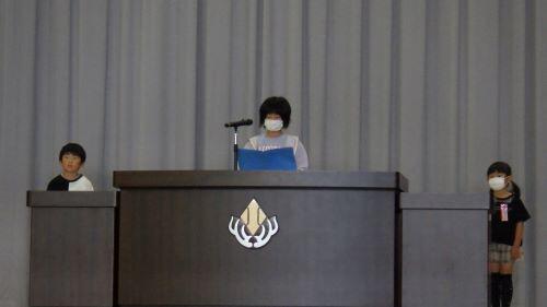 今日は、図書委員会による児童朝会を行いました。初めに、校長先生から賞状の伝達を行いました。前沢ソフトボール協会長杯小学生女子交流大会や先日行われた小学生交流サッカー大会、市内図工・美術展の表彰を行いました。