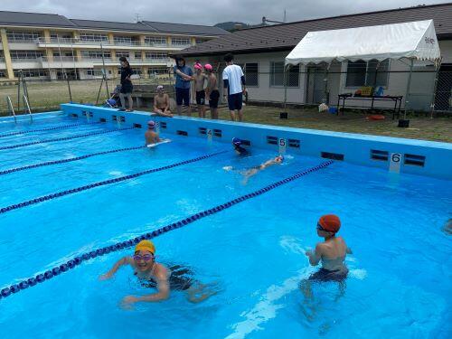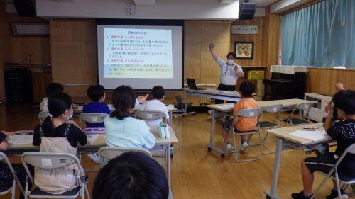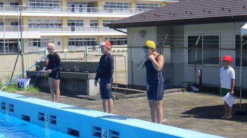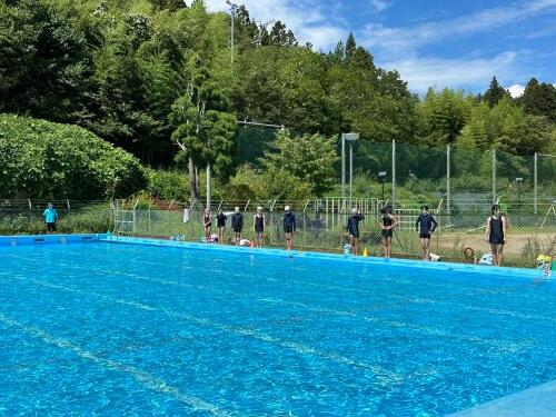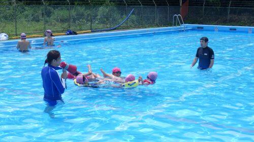 4~6年生はライフセービング学習を行いました。万が一溺れた場合に水に浮く方法や,様々な道具を使って浮く方法について,実演を交えて教えていただきました。講師の気仙沼ライフガード・シーバード気仙沼小山大介様には,暑い中にも関わらず,プールで丁寧に教えていただきました。