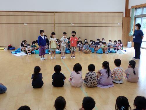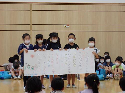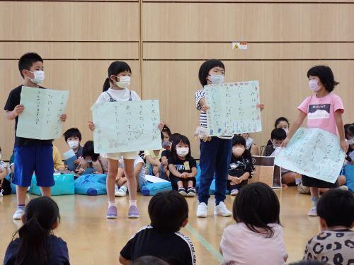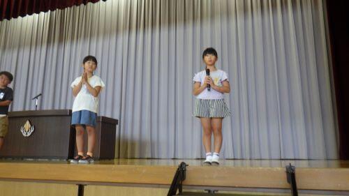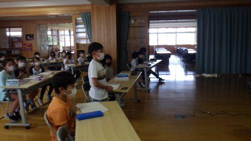 また,5年生は野外活動の解団式を行いました。3日間の野外活動で学んだこと,成長したことを副班長が発表しました。また,代表児童からは「野外活動でできるようになったことを今後の活動に生かしていきたい」と力強く発表していました。