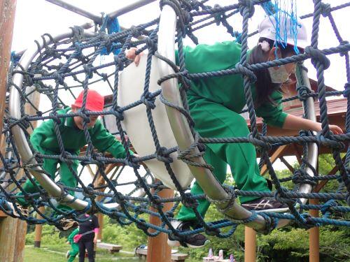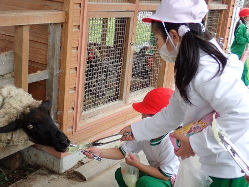 1年生はモーランド本吉に行き,アスレチックを行ったり,遊具で遊んだり,動物に餌やりを行ったりしました。ウサギと触れ合い,「かわいい」とうれしそうにしていました。