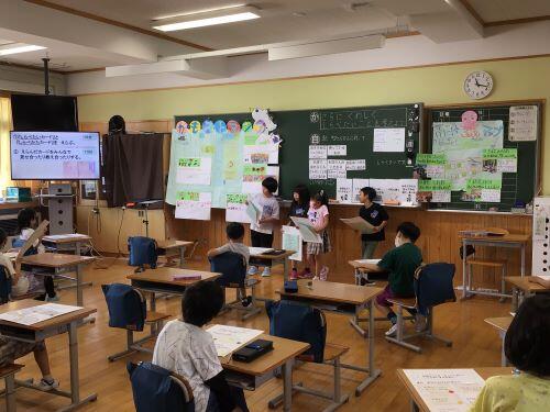 本日2校時に4年生の授業研究が行われました。これまで海と生きる探究活動でまとめてきた内容をさらに深めるためには、何が必要であるかについて友達からもらったアドバイスなどを元にグループで考えていました。