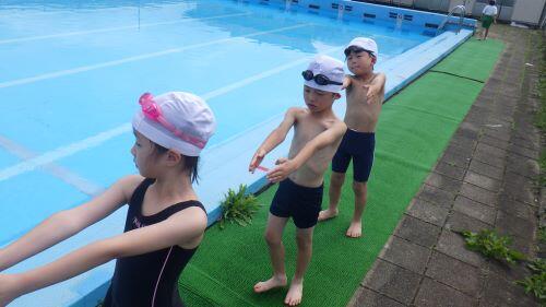 21日(水)に4年生が今年初めての水泳学習を行いました。プールサイドでの整列の仕方,シャワーの浴び方などを確認した後に,プールに入りました。久しぶりの水の心地よさに子供たちも大喜びでした。