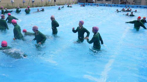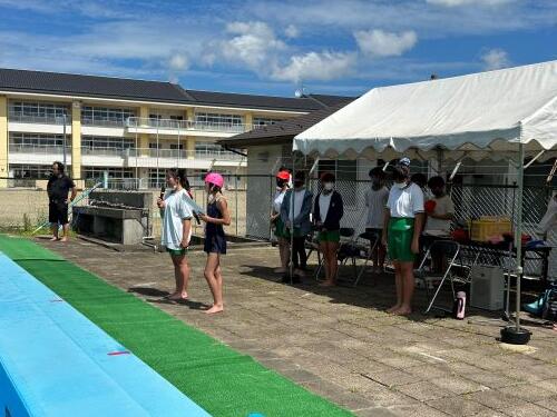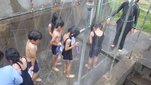 今日,1年生が初めてのプールに入りました。シャワーの浴び方やプールサイドでの過ごし方など覚えることがたくさんありましたが,先生の話をよく聞いて行動していました。