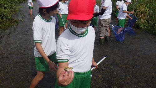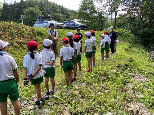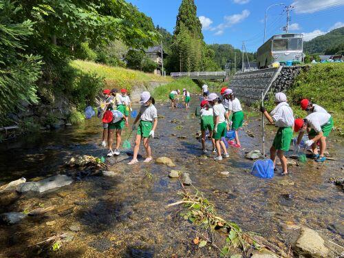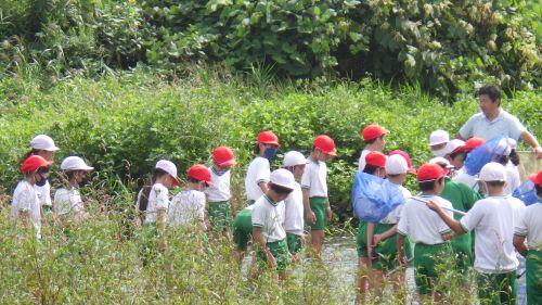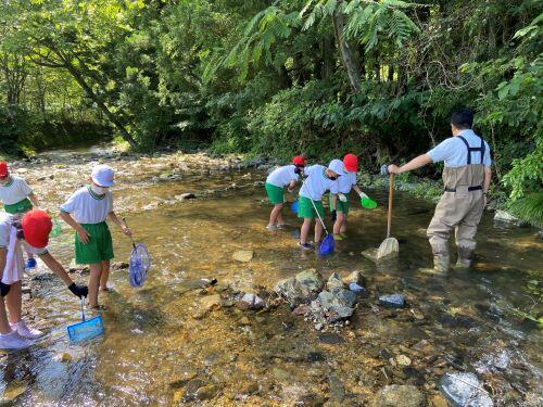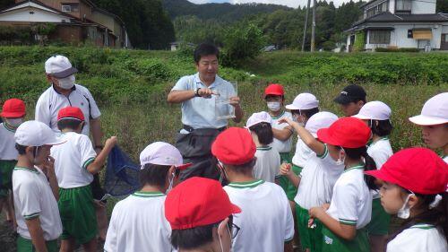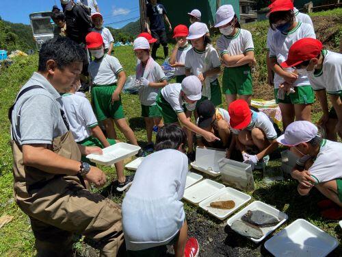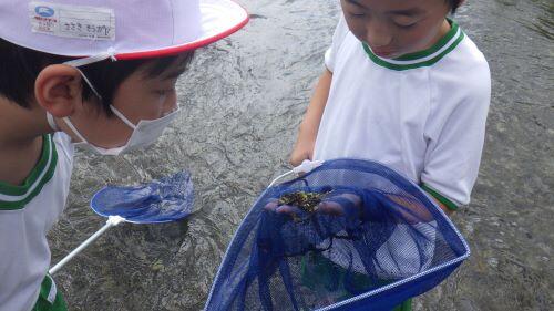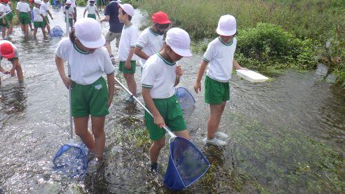 本日の上流域の調査をもとに9月には中下流域の調査も行う予定です。棟方先生には,暑い中,生き物の捕まえ方や生き物のことを教えていただきました。ありがとうございました。