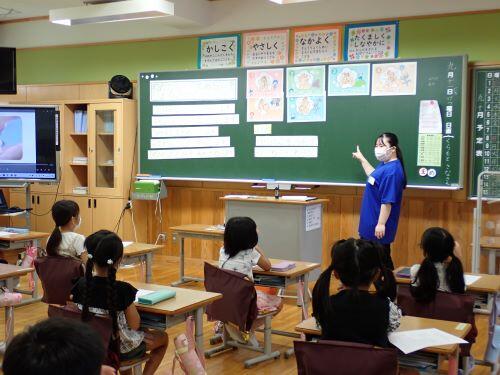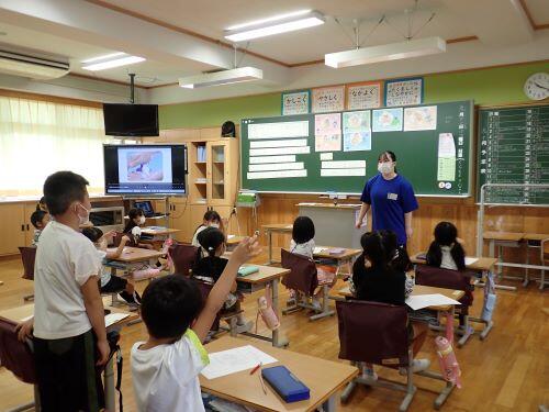 5校時1年生は、国際理解の授業をALTの先生と一緒に行いました。ALTの先生から動物や鳴き声の英語での言い方を教えてもらいました。ゲームなどを交えて楽しく学ぶことができました。