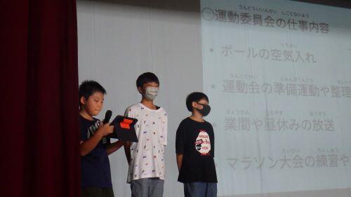 業前時間に放送委員会による児童朝会を行いました。放送委員から,昼の放送や放課後の放送についてクイズ形式で紹介しました。