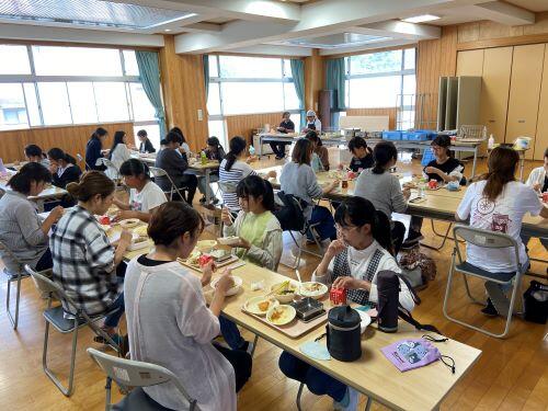 また、秋まつり終了後には、一緒に給食を食べました。1年生が優しくお世話をする姿が見られました。