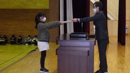 本日、修了式が行われました。それぞれの学級の代表が校長先生から修了証を受け取りました。子供たちは、普段よりも立派な態度で式に参加していました。校長先生から、「友達を思いやること、最後まで頑張ることをこれからも続けてください。そして春休みには本をたくさん読んでください」とのお話がありました。
