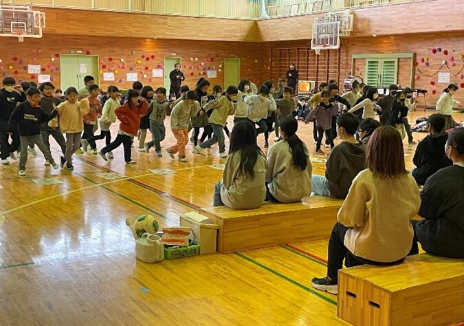 この会の目玉は、各学年からの出し物です。6年生に楽しく過ごしてもらおうと、これまで練習してきたダンスや合奏などを披露しました。出し物の中に感謝の言葉やクイズなどを入れている学年もありました。下学年の発表に対し、6年生は手話を取り入れた合唱を発表してくれました。6年生との別れがさみしくなって、涙を流す児童も見られました。