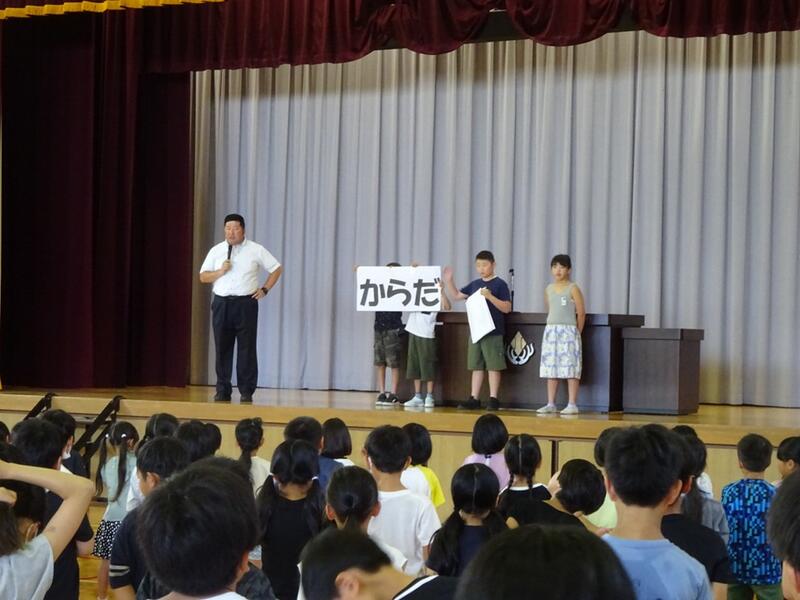 校長先生と生徒指導担当の先生からは、夏休みに頑張ってほしいことや気を付けてほしいことについてお話がありました。