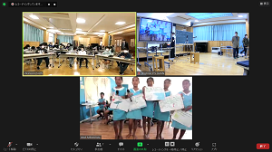 さすが5・6年生はしっかりと自分の考えをもって発表し,質問や感想も積極的に行っていました。これは,ケンタロさんや正雄さんの文化や背景も説明した的確な通訳と,キリバスの子供たちや先生方がしっかりと子供たちの発表や質問を受け止め,真剣に答えてくれたからだと思います。