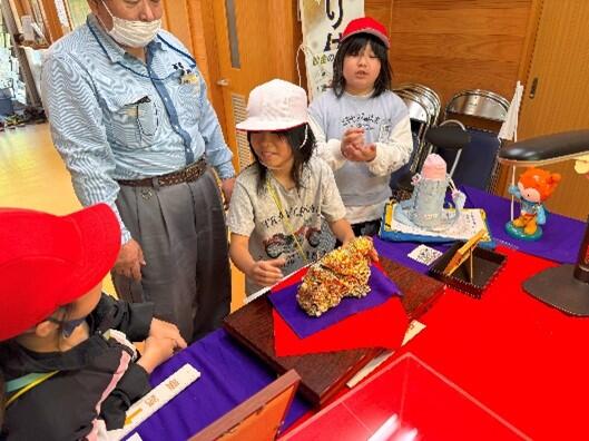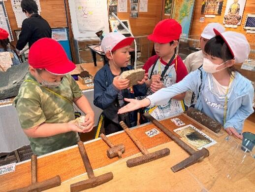 本日、3年生の海と生きる探究活動の時間に、鹿折金山資料館の見学をしました。鹿折金山資料館に児童が見学に行くのは、今年度が初めてです。資料館に着くと、豊田館長さんはじめ、講師の先生達が出迎えてくださり、細やかに説明してくださいました。児童は、展示されている実物大の金を特別持たせてもらい、日本一の大きさに驚いていました。また、金を発掘するための様々な道具があることが実物を見て分かりました。これから探究活動を進めていく中、金山と鹿折の関わりについても調べていきたいと思います。