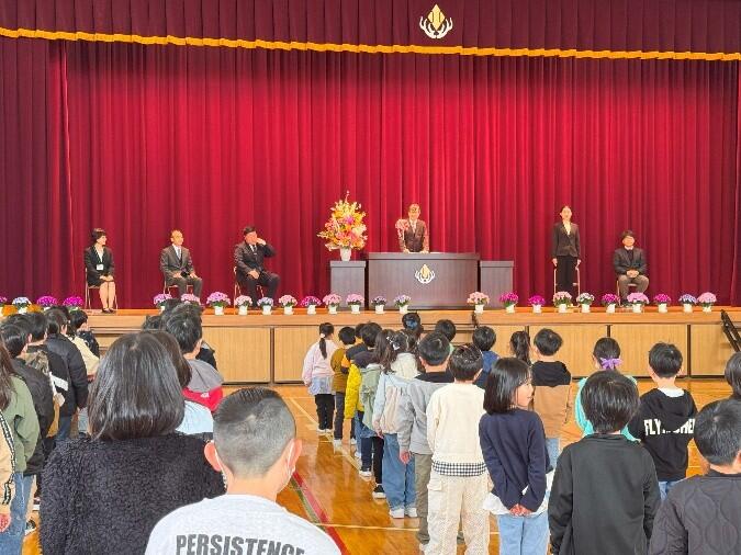 令和7年度がスタートしました。新しく転入された先生方の披露式では、新6年生の鈴木悠馬さんが歓迎の挨拶を立派に行いました。転入された5名の先生方には、鹿折小学校を支える柱として、これから活躍していただきたいと思います。