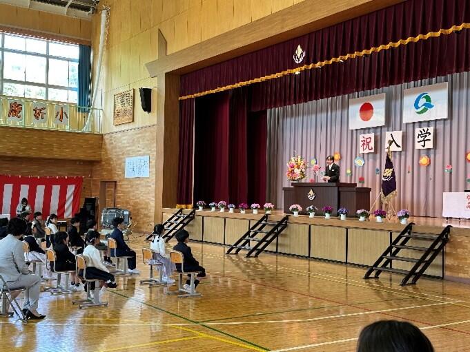 その後、入学式を行いました。31名のピカピカの1年生が鹿折小学校に入学です。今年から6年生が残って1年生のお世話や保護者の案内等をしてくれました。6年生にお世話をされた1年生は、どこかうれしそうな表情をしていました。