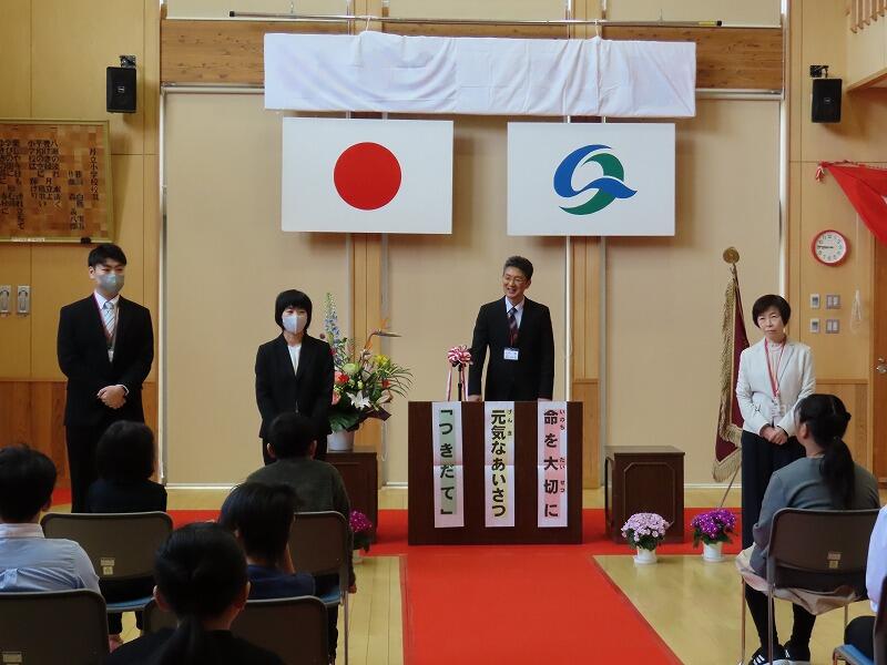 始業式では1年間頑張ってほしい3つのめあてについて話しました。「つきだて」の合い言葉(強い心と体に挑む子、気持ちよく働く子、誰にでも優しい子、丁寧に学ぶ子)を目指すこと、「元気なあいさつ」をすること、「命を大切に」することです。