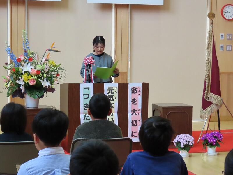 5年生から児童代表の言葉がありました。自分の頑張りたいことを発表しました。堂々とした姿に感心しました。