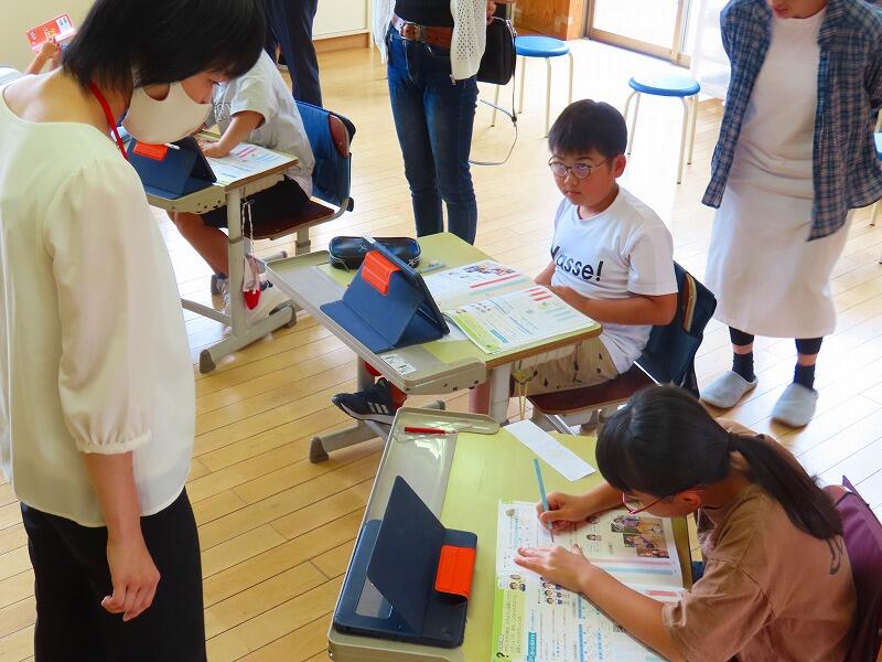 このあと、1・2年生の教室では、夏休み前の配布物を確認し、タブレット端末の使い方の復習を行っていました。