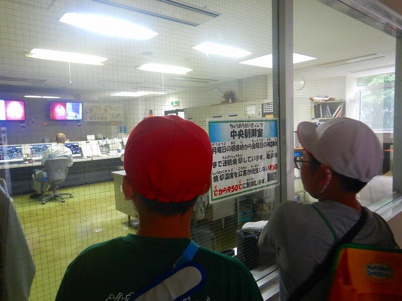 中央制御室。センター各所の機械を制御している部屋です。月曜の朝から金曜の夜まで連続でゴミを焼却しているそうです。