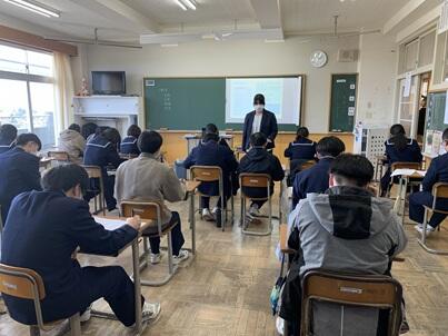 2月3日(火)、2年生の技術の時間に株式会社マナライブ 代表取締役の木村一也様をお迎えして、「体験」から「仕事」を考える 気仙沼クラフトプロジェクト2025の特別授業を行いました。