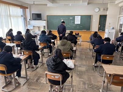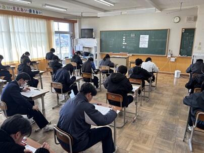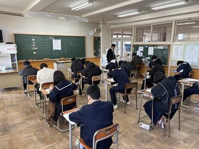 今日は4時間目に回ってみました。1年生は音楽科のテスト、2年生は技術・家庭科のテストに一生懸命に取り組んでいました。今年度最後の定期テストです。みんな真剣に問題に向かっていました。