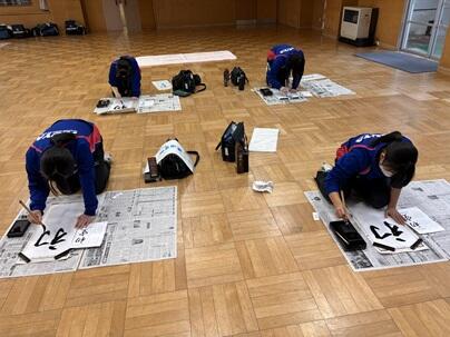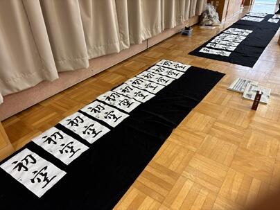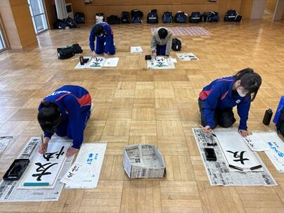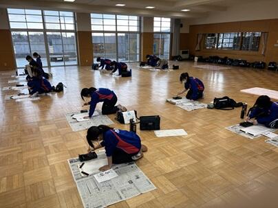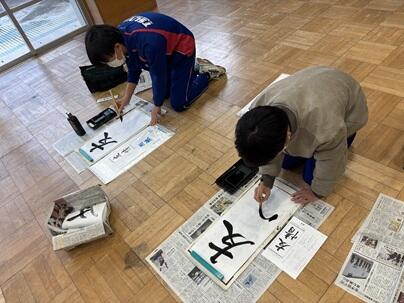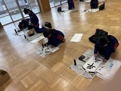 1月15日(木曜日)、多目的室で、席書大会を行いました。限られた時間の中で、各自が集中して筆を走らせていました。