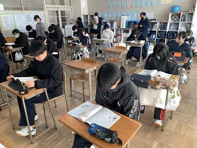 集会後は学級活動をして、その後は、実力テストが行われています。