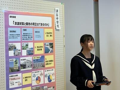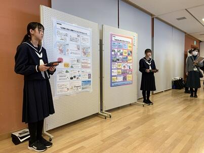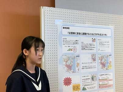取組発表では、2名の代表生徒が防災ゼミで探究した内容を発表してきました。多くの方から、すばらしい研究だとお褒めの言葉をいただきました。