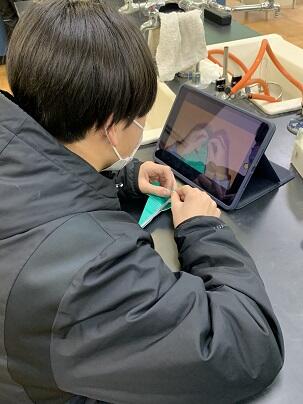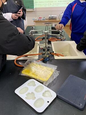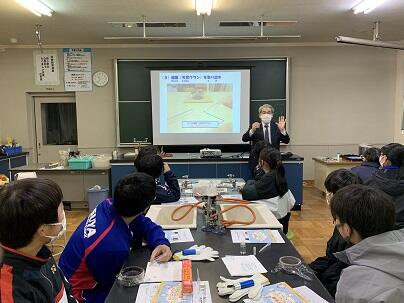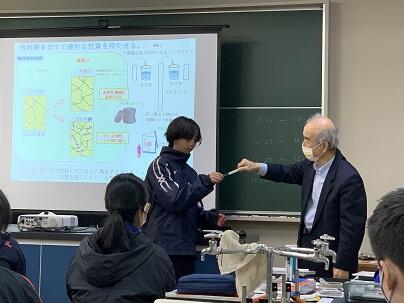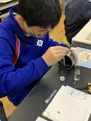東北放射線科学センターから 東北大学名誉教授 石井 慶造(いしい けいぞう)先生、部長(次世代教育) 八柳 善隆(やつやなぎ よしたか)先生、部長 緑川 勇二(みどりかわ ゆうじ)先生の3名にお越しいただき、1時間目は放射線についての講話、2時間目は霧箱(ウィルソン霧箱)などの観察、実験を行い、学びを深めました。