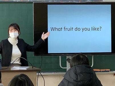 5時間目に続いての6時間目、探究学習コーディネーターのまるオフィスにインターンで来ている大学1年生菊田帆花さんに、探究的な学びの楽しさ、中学校で始めた探究が、高校でどのように深まり、大学進学につながったかなどを、中学校時代の発表ポスターや高校生の時の資料を用いて話していただきました。