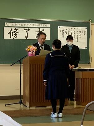 午前、はまなすホールで行われた第74回宮城県中学校英語暗唱・弁論大会本吉大会に、2名の生徒が出場してきました。
