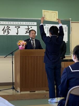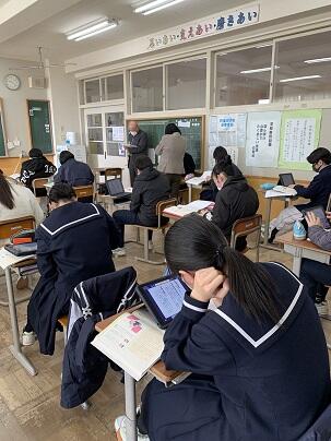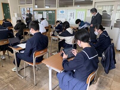 副教育長先生からは、「生徒の皆さんが、主体的に学んでいる様子がうかがえます」とお褒めの言葉をいただきました。