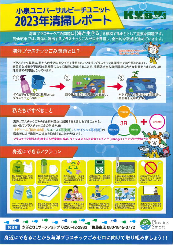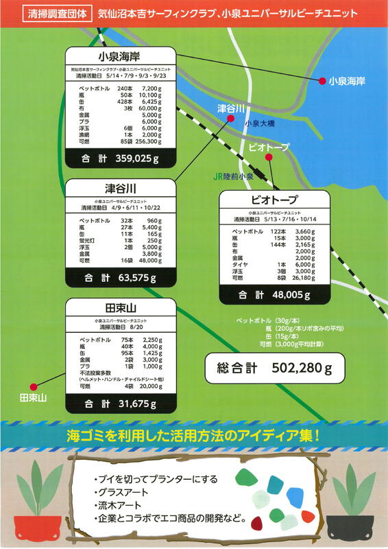 また、海洋ごみが海の生物の量を越えてしまう2050年問題も、あなたの足下のごみを1つ拾うことで、津谷川に流れ込むごみが減り、ひいては太平洋のごみを減らすことができると訴えます。