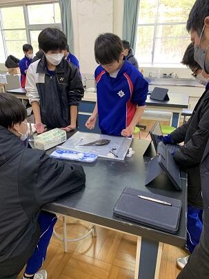 本日、理科室において、2,3校時は2年1組、4,5校時は2年2組で放射線教室を行いました。
