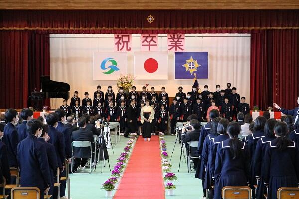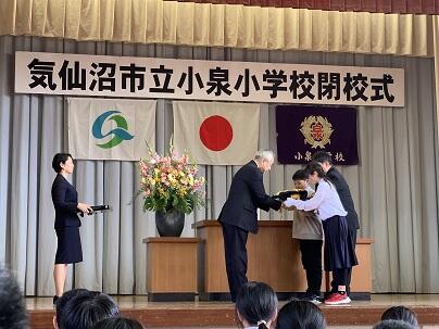 5年生は、統合した小泉小学校・馬籠小学校の校歌を披露しました。