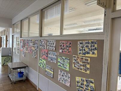 今朝校舎内をまわると、3年生のフロアにたくさんの思い出の写真が掲示されていました。今日登校する仲間たちのために、昨日登校した3年生が準備したものです。