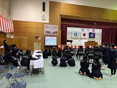 同窓会入会式の後、全校で最後の卒業式練習を行いました。
