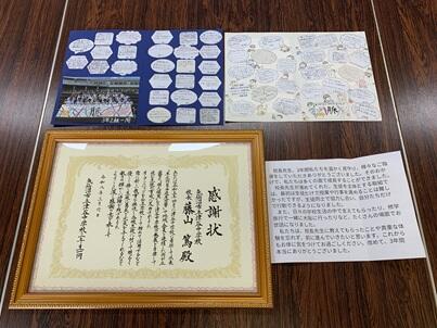 企画委員会から校長先生へ感謝状と寄せ書きの贈呈