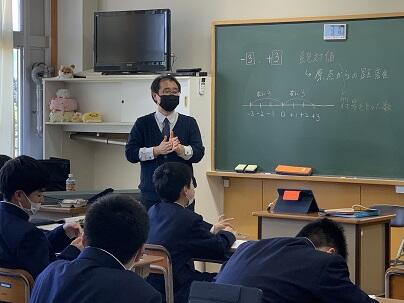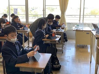 本日、茨城県日立市立十王中学校渡邉先生が来校し、津谷中学校の授業の取組、ようすを参観しました。