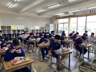 給食の時間、放送による県新人大会の壮行会を行いました。