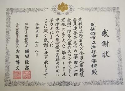 参加した2人とも、とても立派な態度・礼儀であり、1年間の感想を発表する場面でも、堂々と話していて、感心しました。