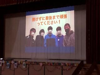 2月22日(木曜日)5,6校時、3年生が「おかえり先輩!」として、講話をいただきました。