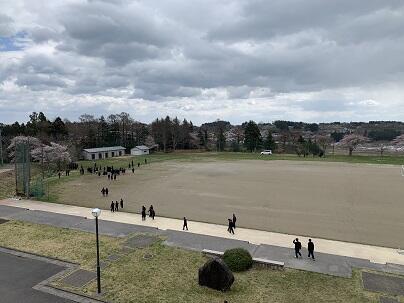 全学年が、時間を見計らって、桜の前で学年写真を撮っていました。