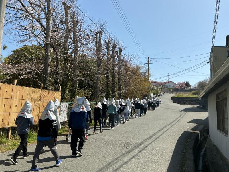 4月17日(金)に、強い地震とそれに伴う津波を想定した避難訓練を行いました。校舎内から校庭に、さらに第二次避難場所である津谷幼稚園駐車場へと避難を行い、本番を想定した避難の仕方を確認しました。子どもたちは、自分の命を守るために真剣な様子で訓練に取り組んでいました。校長先生からは「いつ震災が発生するか分からず、天候が悪い日にも避難の必要性があるかもしれない。」という話があり、児童はどんな状況でも落ち着いて行動することの大切さを改めて学ぶことができました。