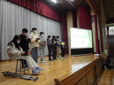 6年生が津谷中学校の総合的な学習の時間「向が丘楽習」発表会に参加しました。