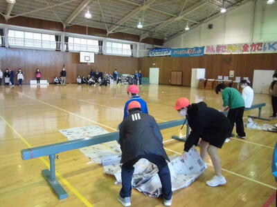 3・4校時の6年生の親子対決レクリエーションでは、「長く繋げた新聞紙を蹴り、素早く手繰り寄せる」ユニークなゲームなど、創意工夫いっぱいの競技が展開され、白熱した勝負が繰り広げられました。