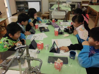 講話の後には、染色液を使って歯の磨き残しをチェックしました。鏡で自分の歯を確認しながら、「思っていたよりも色がついている」「奥歯がよく磨けていなかった」など、多くの児童が予想以上に磨き残しがあることに気づいていました。